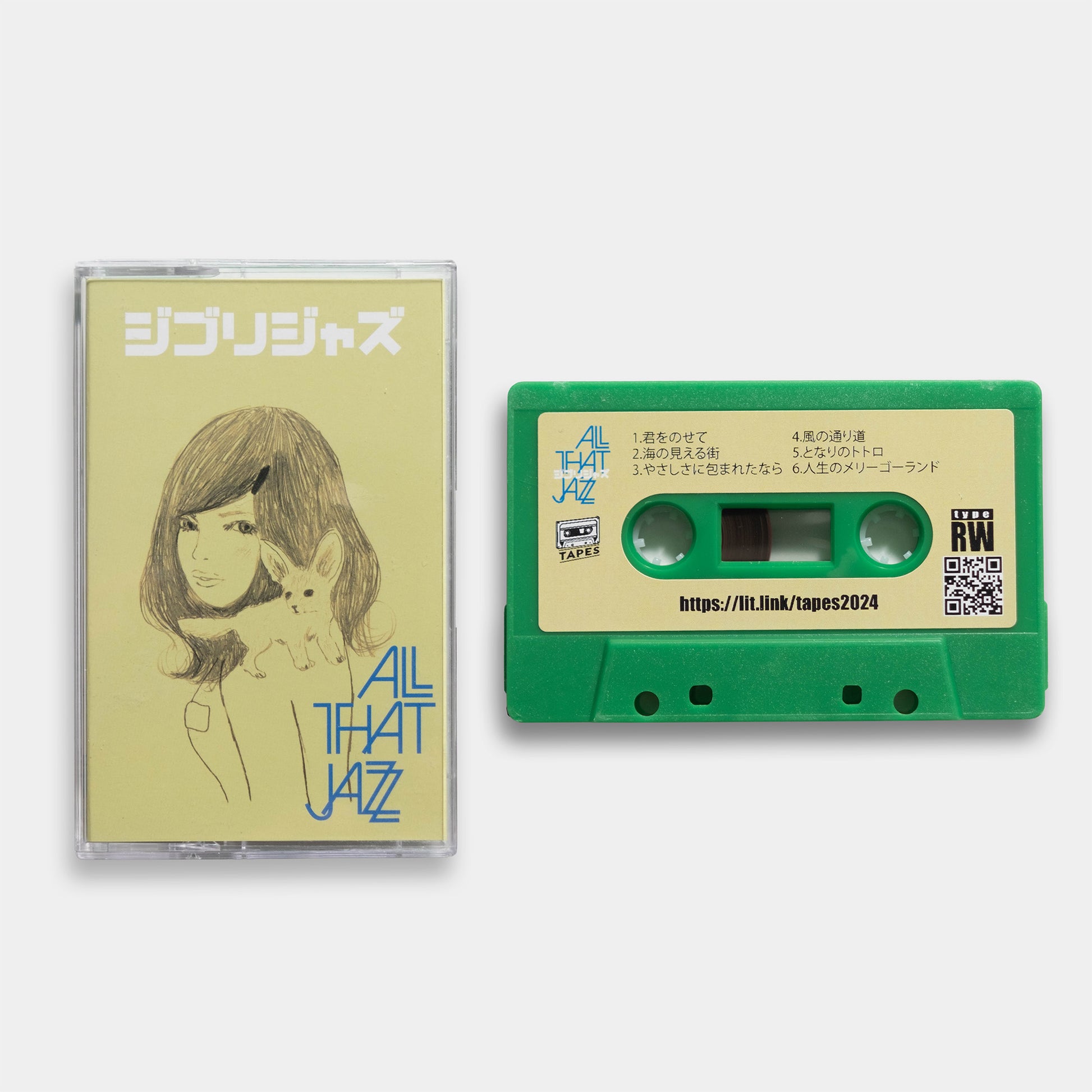 2009年のリリース以来、シリーズ累計ストリーミングは軽く1億再生を突破。ロングセラー『ジブリジャズ』が待望のカセット化。 野上朝生率いるジャズ・アレンジ・ユニット“All That Jazz”が、「君をのせて」「海の見える街」「となりのトトロ」「人生のメリーゴーランド」ほか、誰もが知る旋律を、温度のあるグルーヴと端正なピアノで再構築。A/B各20分の全12曲を収録。耳あたりはやさしく、余韻は長く。はじめてのジャズにも、夜更けのBGMにもよく馴染む一本です。初回限定価格で入手できるこの機会に、テープならではの“少し丸い音”をご堪能ください。